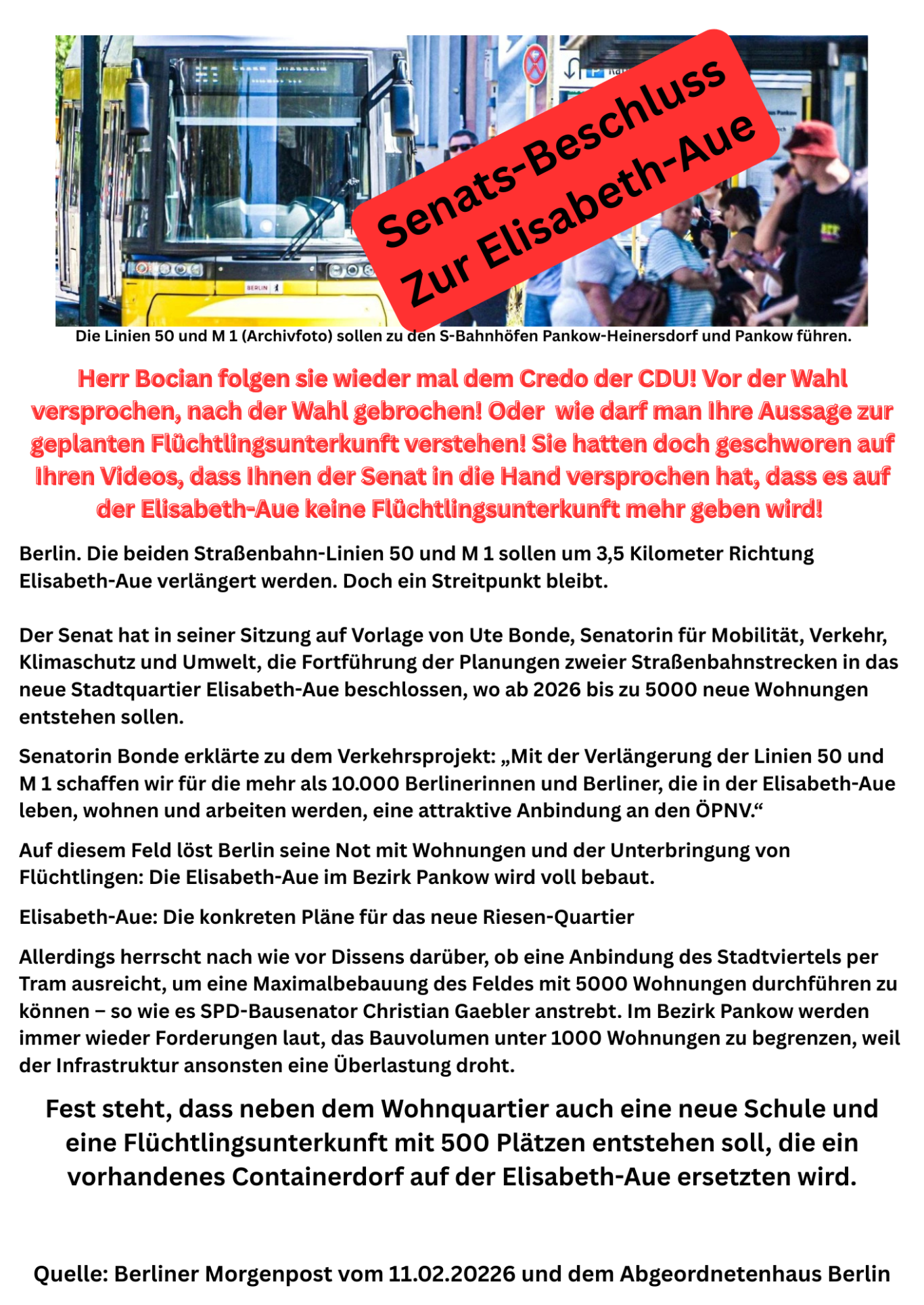 4. **Umweltproblematik:** Die Thematik um die Verseuchung wird vom Senat komplett ignoriert. Es wird behauptet, dass Asbestrohre vor Ort nicht vorhanden seien – wir dürfen solche Aussagen nicht einfach hinnehmen!