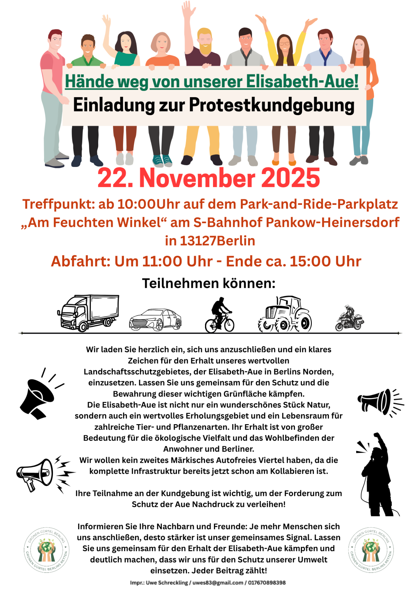 Wir laden alle Bürgerinnen und Bürger ein, diese Petition zu unterstützen. Gemeinsam können wir sicherstellen, dass unsere natürlichen Ressourcen bewahrt und respektiert werden. Jede Unterschrift zählt und bringt uns einen Schritt näher zu einem nachhaltigeren und umweltfreundlicheren Berlin.