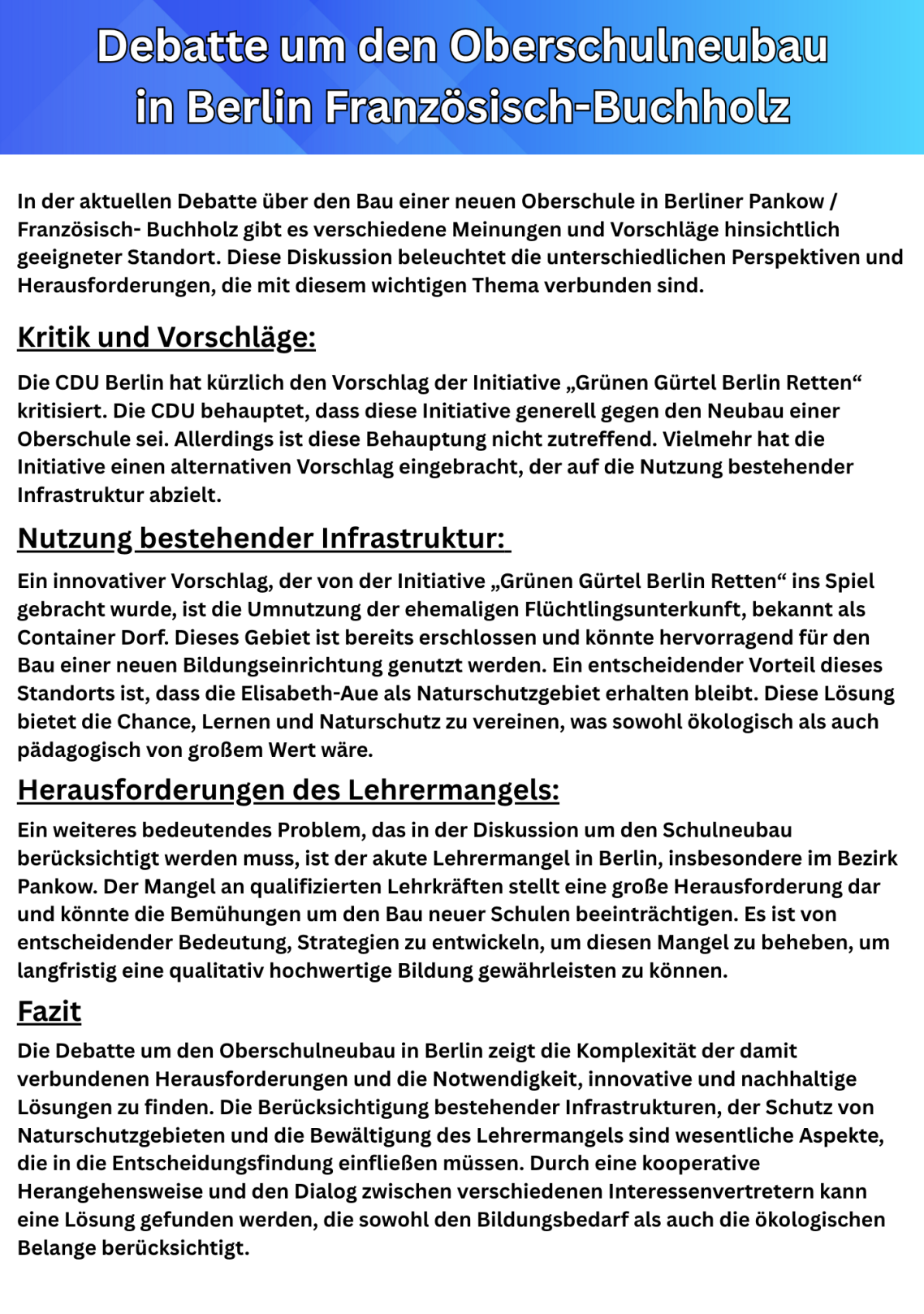 Diese Fragen zielen darauf ab, eine ganzheitliche Diskussion über Bildungsinfrastruktur und städtebauliche Entwicklung zu fördern. Sie laden dazu ein, die Herausforderungen differenziert zu betrachten und nachhaltige Lösungen zu entwickeln.